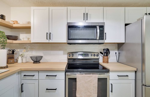 Feel like staying in? Cook a delicious meal in the fully stocked kitchen, or grill some BBQ on the outdoor grill. On those cold nights, cozy up on the couch and warm up next to the indoor electric fireplace. Rejuvenate your body with a relaxing evening in the 7-person 65-jet square hot tub. Get a competitive tournament of Foosball going, or, play one of the many board games provided around the table with your family and friends. Make your way outside and enjoy a game of cornhole— bound to be a family favorite. The backyard boasts a firepit, with comfortable seating, making it a perfect setting for roasting s’mores.