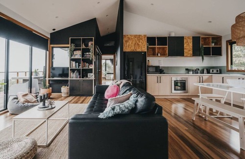 Remove yourself from life's busyness and breathe in the tranquility and peace that Black Wattle Coastal retreat offers. Stoke up the outdoor fire pit and pour a glass of wine and enjoy listening to the waves roll in while having the view completely to yourself. Too cold outside? Light the fire indoors and sit in a bean bag with a good book and enjoy the view through full glass frontage.