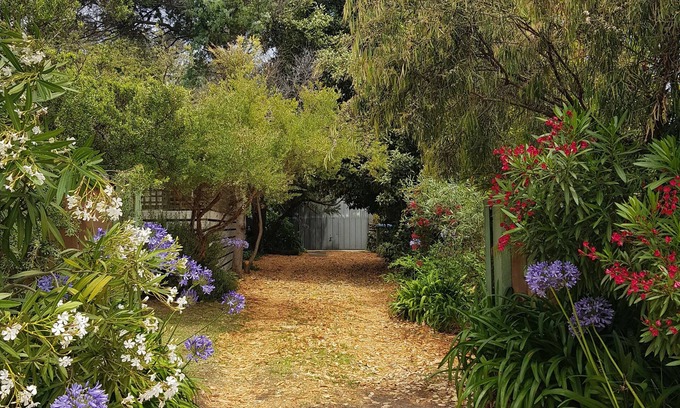 This seaside cottage is located in a natural treed environment which allows for privacy, peace and quiet. It is located in walking distance to the Blairgowrie back beach and a five minute drive to the safe swimming bay. A ten minute drive will get you to the heart of Sorrento for coffee and a leisurely stroll. The large natural garden is ideal for sitting quietly and relaxing or reading your favourite book. A large decking surrounds the cottage and provides a great place to sit and relax and enjoy the cool ocean breeze.