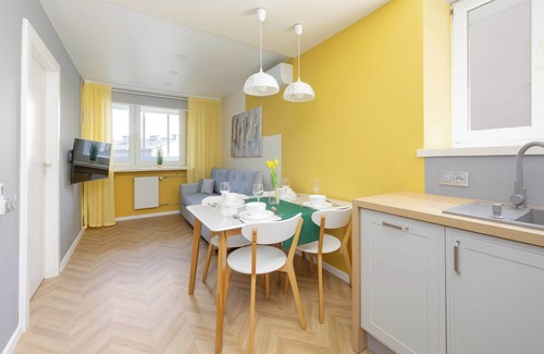 The apartment is located in a great location on Blaszana Street in Warsaw. Guests have at their disposal a bedroom, a cozy seating area with a practical kitchenette and a bathroom with a shower. Easy check-in and check-out. Free Wi-Fi is available. Guests receive a set of cosmetics, towels and bed linen. We issue a VAT invoice on request. Book today!