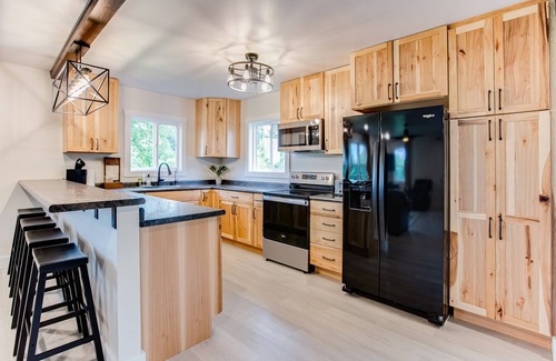 This lovingly renovated farmhouse, blends historic charm with modern comfort — creating an ideal space for families to bond and enjoy nature together. Step outside to explore your own private slice of Brown County beauty, or relax indoors with cozy spaces and thoughtful amenities. Need to stay connected while you unplug? Our fast fiber internet and private office nook make it easy to work remotely.