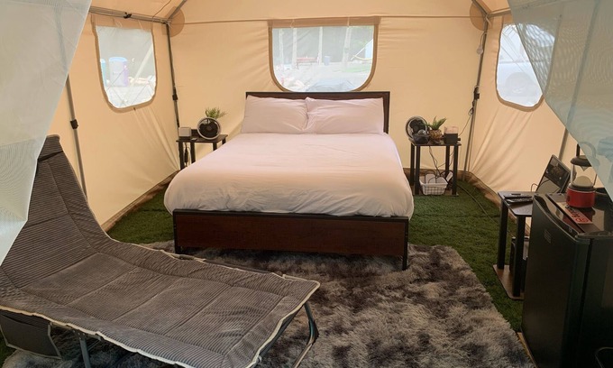 Beautiful glamping experience. All twin size beds come with a fitted sheet, one pillow and pillowcase. All queen size beds come with a fitted sheet, two pillows with pillowcases. Blankets available for $15.00 each bed.