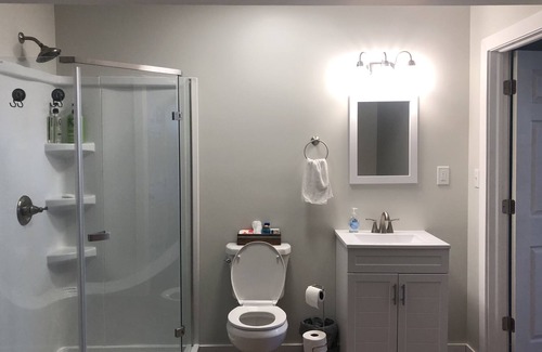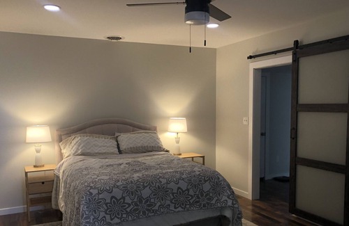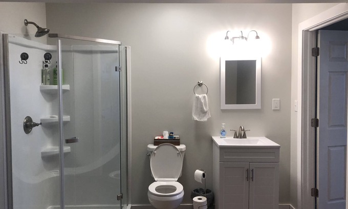 Separate basement space with its own entrance, own parking spot, separate patio, and separate from rest of the home. The kitchen includes fridge, microwave, coffee and dinning table. Open floor plan. Perfect for a family of 3 or 4 and a weekend trip!