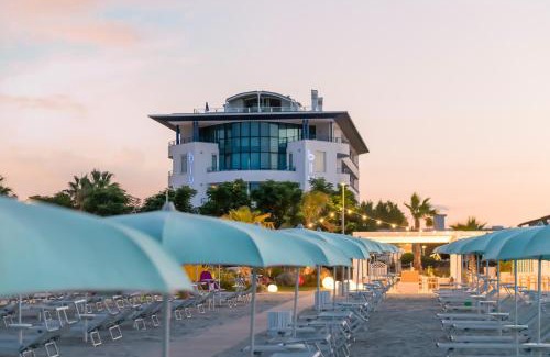With its 1148 ft² wellness center, a heated outdoor pool, charming gardens, and well-equipped private beach, Blu Suite Resort is ideal for a relaxing holiday on Bellaria Igea Marina. Rooms include a parasol, 2 sun loungers at the private beach, for economy rooms with an extra fee Soak up the sun on the sun loungers provided by Blu Suite's pool, which features warm water and hydromassage corners. Kids have their own pool area and an outdoor playground, as well as indoor playrooms, a beach playground and a free mini club. A restaurant for kids with special menus is also available. Entertainment activities are organized from June to September. Offering unlimited access for 16+ years, the wellness center features a sauna, a gym, a hot tub, a Turkish bath, chromotherapy, and relaxation and ayurveda massage rooms or beauty treatments, wellness center for economy rooms with an extra charge. Two meeting rooms with a maximum occupancy of 150 people are available on site. All rooms here have modern décor and a flat-screen TV with satellite channels. Suites also come with large balconies, and the presidential suite provides utter luxury, boasting indoor and outdoor whirlpools, and a huge sea-view terrace. Every room and suite has a kitchenette, which can be used for free to heat up meals for babies. A generous breakfast complete with organic products and gluten-free items is served. Snacks can be enjoyed by the pool, as well as à-la-carte dinners. The hotel is 5 mi away from Rimini exhibition center. The hotel provides paid parking on site. Bikes can be rented on site. We have a parking for €15.00 per day and a garage ( underground parking ) for €20.00 per day . the garage should be book in advance Animal , max 10 kg cost €20.00 per day Indoor playrooms, a beach playground and a free mini club. Entertainment activities are organized from June to September. We have 3 restaurants : 1 mediterranean (blue resturant) , 1 gourment ( Alma restaurant) and 1 at the beach ( insolito beach cafè) . All rooms here have modern décor and a flat-screen TV with satellite channels. ALL ROOMS AND Suites also come with large balconies, The spa is open every day, from 10:00 until 21:00. Children under 16 years cannot access the spa. Maximum size of pets is 10 kg. The private beach is open from Easter until September. Beach umbrellas and loungers are available. Pets are allowed at a daily extra cost.
