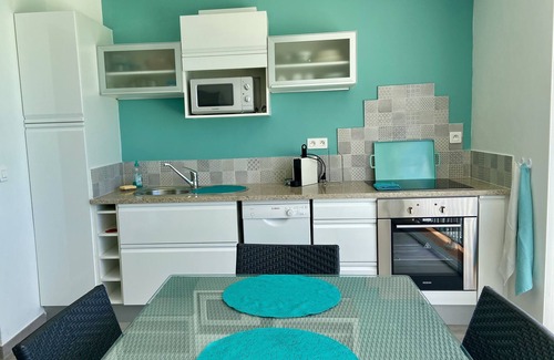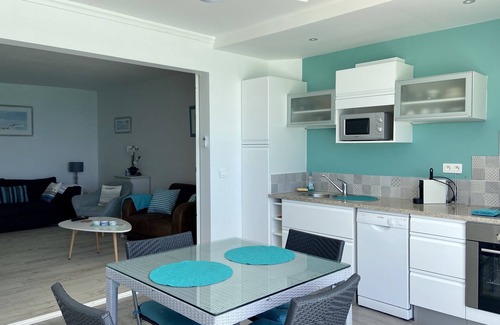 La cuisine spacieuse donne directement coté mer ,elle est entièrement équipé et à un lave vaisselle pour plus de temps pour le repos.