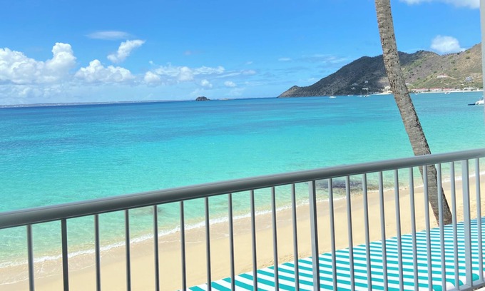 " Blue beach "est un Appartement situé au deuxième étage dans une Résidence les pieds dans l'eau avec une vue exceptionnelle à 180° sur la mer des CARAÏBES et a un accès direct sur la plage de Grand Case.