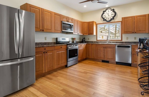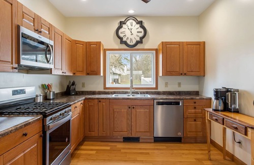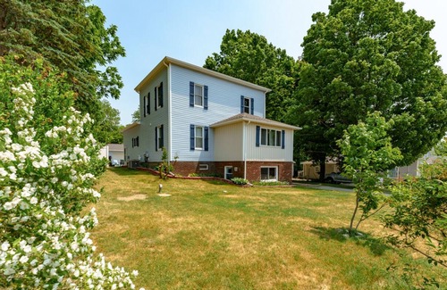 Welcome to Blue Comfort Inn! Located just a couple blocks from downtown Fennville, walk to the local restaurants and seasonal festivals. This large home features four spacious bedrooms and two full baths and an open kitchen and dining. This kitchen is stocked with the basics you need to cook a homemade meal and has new appliances. Three of the four large bedrooms have their own smart tvs. The outdoor space is just as great as the inside. The outdoor space includes a new hot tub, horseshoes, and a fire pit. This home is ready for your next vacation and don't forget to bring your furry friends.
