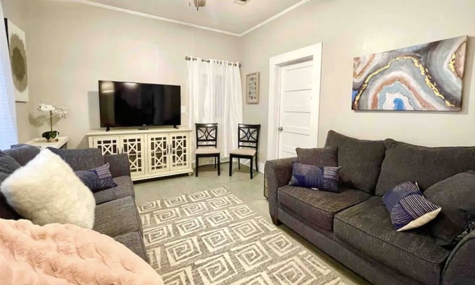 Headed to Hattiesburg with your family or a bigger group of friends? This Airbnb is the perfect location to accommodate your needs! This 3 bedroom, 2 bath house can sleep up to 9 people! Not only does it have it a full kitchen, but it also provides plenty of extra space with a separate living room & dining room to enjoy meals & time spent together! With all the 5-star amenities this new property has to offer, it will be the place you return to each time you're in the Hub City!
