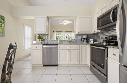 This 3-bedroom property is very spacious with plenty of room for entertaining and has a relaxing tropical vibe throughout the whole house. It also comes with lots of seating if you are just looking to kick back and relax. The kitchen comes with all the appliances you would need to make any meal you miss from home and is fully equipped for your stay. BBQ Grill is also available for your use.