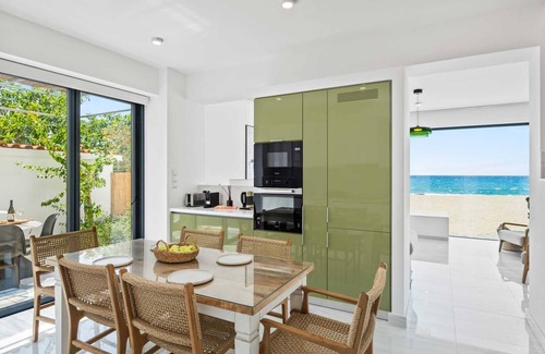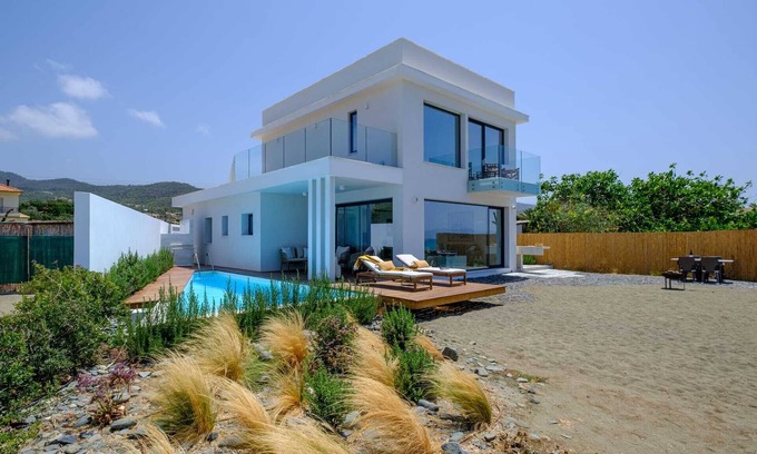 Step into a world of refined coastal living at Blue Iris Luxury Villa by Nomads, a brand-new 3-bedroom masterpiece set directly on a secluded sandy beach in Ayia Marina Chrisochous. Designed for guests who value privacy, style, and uncompromising comfort, the villa combines contemporary luxury with an unbeatable beachfront location--just step off your private deck and sink your toes into soft, golden sand.