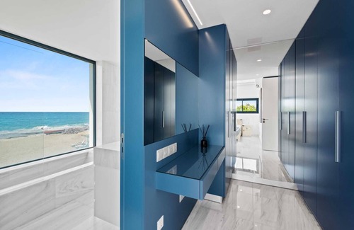 The living room is a showpiece--floor-to-ceiling windows frame uninterrupted sea views, with a Smart TV that disappears at the touch of a button to keep your views uninterrupted. Step outside to the sun-soaked deck with your private pool, complete with sunbeds, an outdoor shower, a barbecue area, and alfresco dining. Just beyond, the beach is literally at your feet.