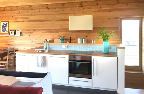We offer a holiday home with an open living space (eating and cooking) and 3 bedrooms. The house has 2 separate entrances, 2 kitchens and 2 bathrooms. The apartment is fully furnished and equipped with various extras. There are large fitted wardrobes in all rooms. In the living room, a natural stone wall with an integrated open fireplace is the cozy highlight. The modern kitchens are equipped with a dishwasher, microwave, kettle, coffee machine and oven. The bathroom impresses with a spacious shower and a round window with a view of the countryside. Around the house, the wooden terrace with veranda invites you to linger.