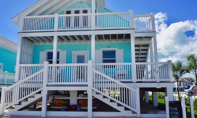 Blue Moon Cottage offers 2 bedrooms and 2 full baths on the lower level with another bedroom and bath upstairs making it a great home for families or friends who all need their own privacy. This pristine residence is completely outfitted with everything you will need to make your vacation a memorable and pleasant experience, including central A/C throughout, Cable TV and Wifi Internet, laundry facilities and an outdoor shower. There are also kayaks, paddleboards, beach chairs, umbrellas and BBQ Grill for guests’ enjoyment.