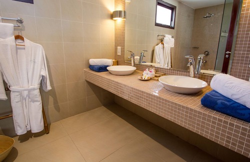 Bathrooms include separate bathtubs and showers with rainfall showerheads, bathrobes, slippers, and complimentary toiletries. Guests can surf the web using the complimentary wireless Internet access. Additionally, rooms include complimentary bottled water and hair dryers. Housekeeping is provided daily.