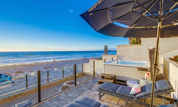 This charming oceanfront vintage villa is a beach lover's dream! Located in the highly sought after La Jolla shores...come enjoy Sand, Surf, and stunning Sunsets… bring the whole family for a perfect beach vacation in this coveted community! This 2,000 Sq foot home has two patios with fire pits, jacuzzi, and plenty of outdoor seating to watch the waves all day! Blue Sea Villa comfortably accommodates up to 12 adults in beds, with additional sleeping space available for 2 children in cot.