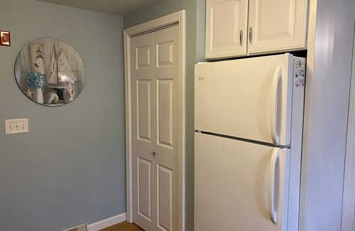This newly renovated 2+ bedroom ranch home with Central Air conditioning and WIFI. 2.5 miles from Menauhunt beach. Hardwood floors throughout. Two bedrooms, living room, dining room, fully equipped kitchen. Beautiful, bright sunroom to sip your coffee in or read a book and relax. Home with a lovely fenced in yard and patio. Great for playing yard games, grilling and relaxing. Sleeps 6 comfortably, full bath with tub/shower combo and additional new outdoor shower. Newly furnished comes with fully appointed kitchen. Pots, pans, utensils, dishes, glasses, etc. Bed linens and bath towels provided. In house washer and dryer included. This lovely home is available for 7 night weekly rentals. (Sat-Sat) Peak season (June, July, August) and non-peak season more flexible rental intervals. Located in Blue Water Shores Neighborhood within walking distance of Bad Martha's microbrewery. Inlet .3 miles down the road with private beach. Great for children, watching the sunset, as well as launching your kayaks or paddle boards
