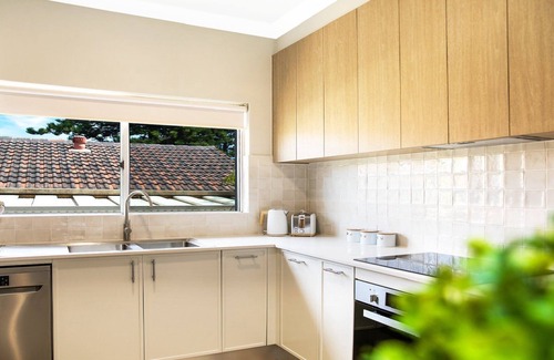 *Fully equipped modern kitchen with electric cooktop, dishwasher, microwave, fridge and Nespresso coffee machine
