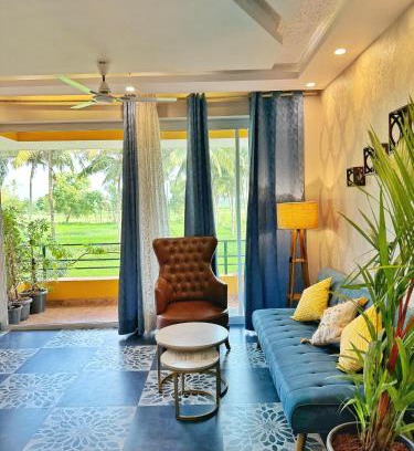 Bluebell Meadows 2BHK is a recently renovated apartment in Varca, near Varca Beach. This property offers a private pool, free Wifi, and free private parking. The accommodation provides airport transfers, while a bicycle rental service is also available. Providing a balcony and pool views, the spacious apartment includes 2 bedrooms, 3 living rooms, flat-screen TV, an equipped kitchen, and 2 bathrooms with a bath. The apartment offers bed linen, towels, and daily room service. For guests with children, the apartment offers kids pool. A car rental service is available at Bluebell Meadows 2BHK. Cavelossim Beach is a 19-minute walk from the accommodation, while Margao Train Station is 5.7 miles away. Dabolim Airport is 20 miles from the property.