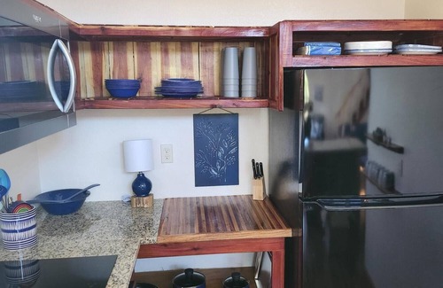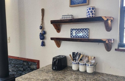 The cottage has a spacious living area adorned with comfortable furnishings. Equipped with a fully functional kitchen that adds a touch of charm.