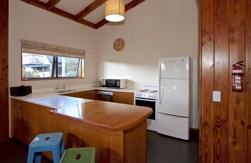 Located downstairs at this Ohakune accommodation, bedrooms 1 and 2 each have a Queen bed, while the upstairs mezzanine level includes 6 single beds. There is also a fold-down sofa bed in the lounge. To keep the kid's busy, the mezzanine level provides a second lounge, fully equipped with a DVD player, Wii, and lots of games and toys. This well-presented Ruapehu base is ideally suited for two families or an extended friend and family group.