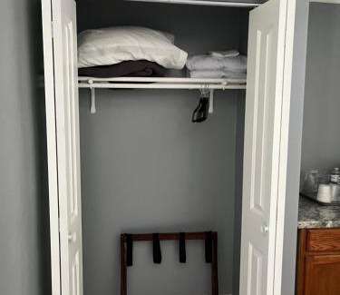 Food & DrinkTea/Coffee makerBathroomShower, Hairdryer, Free toiletries, Toilet, Private Bathroom, Bathtub or shower, Guest bathroom, Towels/Sheets (extra fee), Towels, Toilet paperMedia & TechnologyTV, Cable channels, Flat-screen TVGeneralAir conditioning, Iron, Heating, Private entrance, Tile/Marble floor, Carbon monoxide detectorKitchenRefrigerator, Microwave, Coffee machineLiving AreaSitting areaBedroomWardrobe or closet, LinensOutdoorsBarbecueViewGarden viewAccessibilityEntire unit located on ground floorRoom AmenitiesClothes rack, Socket near the bed |