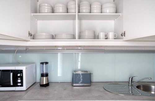 Thoughtfully designed with bespoke finishes, modern furnishings, and a fully equipped kitchen, you’ll enjoy that “I’m home” feeling with this Blueground apartment. Whether you’re lounging in your pretty living room streaming the latest and greatest entertainment on the smart TV or premium wireless speaker, or getting some well-earned rest on the superior quality mattress with luxury linens, you’ll fall in love with everything this Campo de Ourique apartment has to offer.