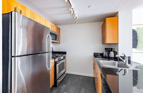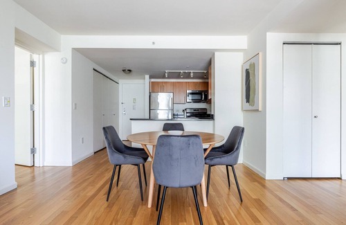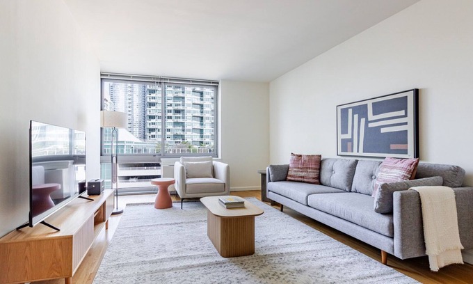 This furnished apartment is located in Long Island City, a neighborhood with amazing East River views. Nowadays, the area has become one of the best downtown Manhattan alternatives. Here, locals can enjoy a mix of activities from shopping on Jackson Avenue to indoor arts entertainment at MoMA PS1. Long Island City is also filled with modern public green spaces ideal for a stroll or jog. Grand Central Station is only a 20-minute subway ride away.