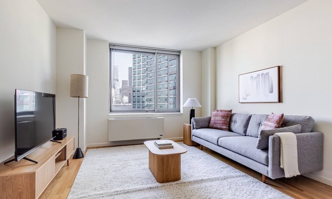 Show up and start living from day one in New York with this roomy one bedroom Blueground apartment. You’ll love coming home to this thoughtfully furnished, beautifully designed, and fully equipped Long Island City home with stunning views over the river. (ID #NYC1788)
