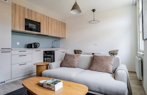 In this apartment, you’ll find a thoughtfully designed space complete with beautiful furniture and a fully equipped kitchen in this one bedroom property. And, thanks to our superior quality mattresses, luxury linens, and towels, you can relax knowing you’ll always feel comfortably at home. When you’re ready for some fun, you can take in the Prague vibes or bring the entertainment to you with the premium wireless speaker or smart TV.