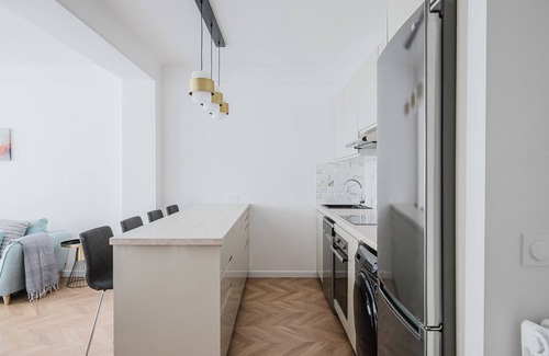 As with any Blueground apartment, you’ll find a thoughtfully designed space complete with beautiful furniture and a fully equipped kitchen in this two bedroom property. And, thanks to our superior quality mattresses, luxury linens, and towels, you can relax knowing you’ll always feel comfortably at home. When you’re ready for some fun, you can take in the Paris vibes or bring the entertainment to you with the premium wireless speaker or smart TV. This apartment also offers in-apartment laundry.