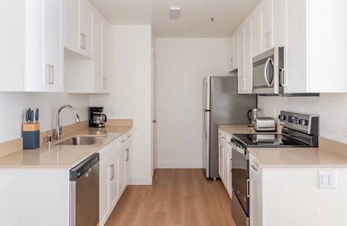 As with any Blueground apartment, you’ll find a thoughtfully designed space complete with beautiful furniture and a fully equipped kitchen in this two bedroom property. And, thanks to our superior quality mattresses, luxury linens, and towels, you can relax knowing you’ll always feel comfortably at home. When you’re ready for some fun, you can take in the Mountain View vibes or bring the entertainment to you with the premium wireless speaker or smart TV.