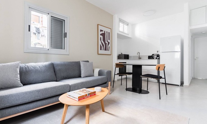 Gorgeous furniture, fully equipped kitchen, smart TV, and a premium wireless speaker are just a few of the amenities you’ll find inside this one bedroom apartment. Ideally located in Tel Aviv, you’ll find a lot to love outside as well. When you’re ready to relax, you’ll be happy to discover every bedroom comes with superior quality mattresses. We handle everything so you can simply show up and start living. This apartment also offers in-apartment laundry.