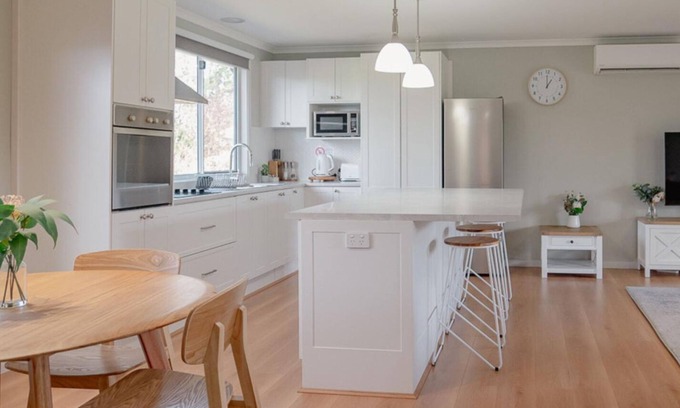 Located in the picturesque waterside village of Metung, this family friendly, newly renovated 2 bedroom house that sleeps 4, is nestled in the Tambo Bluff Estate, close to the newly opened Metung Hot Springs and The Metung Country Club and Golf Course. Stay and enjoy the tranquil bush setting full of bird life, bring your boat and multiple cars to explore Lake King on your doorstep in Metung, and the local attractions of Lakes Entrance and East Gippsland.