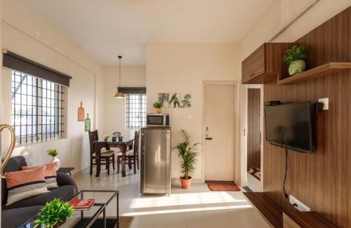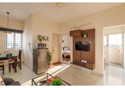 Offering a garden, BluO Park View 1BHK HSR Layout - Terrace Garden provides accommodations in Bangalore. This apartment features free private parking, a 24-hour front desk, and free Wifi. The accommodation offers an elevator, full-day security, and luggage storage for guests. Offering direct access to a balcony with city views, the air-conditioned apartment consists of 1 bedroom. Featuring a terrace with garden views, this apartment also includes a flat-screen TV, a well-equipped kitchen with a dishwasher, a microwave, and a toaster, as well as 1 bathroom with a bidet and a hair dryer. The apartment offers bed linen, towels, and laundry service. The Forum, Koramangala is 3.3 miles from the apartment, while Brigade Road is 5.9 miles from the property. Kempegowda International Airport is 26 miles away.
