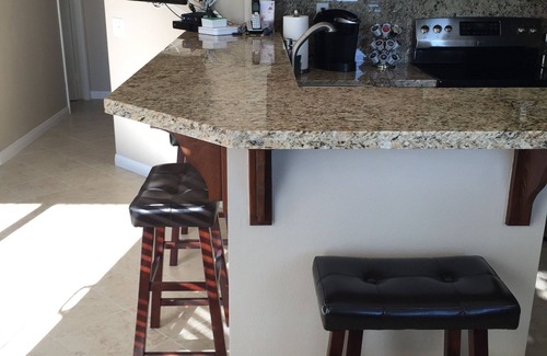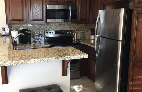 This condo has recently undergone a MAJOR remodel and has been completely remodeled from the floor to ceiling to include all brand new double pane vinyl windows, porcelain tile floors, new paint, new doors, granite counters/bar, ALL brand new furniture, ALL brand new appliances, New carpet in both bedrooms, ceiling fans in every room, flat screen TVs in every room, New patio furniture & BBQ and all brand new furnishings (Towels, sheets, bedding, plates and dishes) etc...