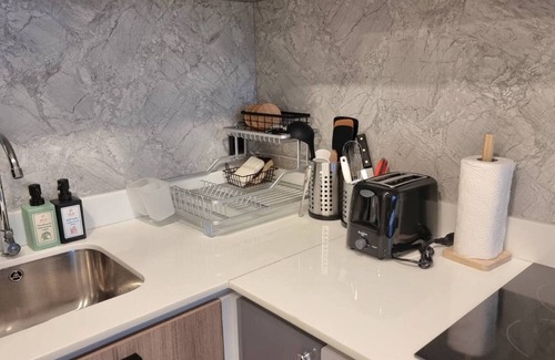 2. This 2 bedroom/2bathroom apartment has total area of 61 sqm and it has been well furnished with all the amenities/appliances to accommodate your stay with full kitchen (microwave, refri, electric stove, dish washing sink, toaster, rice cooker, kettle, plate, spoon, knife, wine opener, pot, fried pan and other stuff) for you to cook your light meals (do not cook heavy meal please, the smoking alarm will be alert). Espresso coffee machine with coffee powder for you to enjoy coffee whole day (available free at coffee corner at reception). We do also provide hybrid dinning table with eco-chairs for your long-hour online working with fiber optic lan wire to ensure you have very strong internet to work whole day and night.