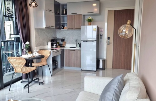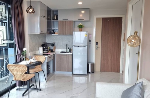 2. This 1 bedroom/1bathroom apartment has total area of 42 sqm and it has been well furnished with all the amenities/appliances to accommodate your stay with full kitchen (microwave, refri, electric stove, dish washing sink, toaster, rice cooker, kettle, plate, spoon, knife, wine opener, pot, fried pan and other stuff) for you to cook your light meals (do not cook heavy meal please, the smoking alarm will be alert). Espresso coffee machine with coffee powder for you to enjoy coffee whole day (available free at coffee corner at reception). We do also provide hybrid dinning table with eco-chairs for your long-hour online working with fiber optic lan wire to ensure you have very strong internet to work whole day and night.