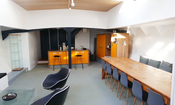 Very big apartment with 7 bedrooms. This modern, just refurbished and renovated apartment is very centrally located in the center of Rotterdam. You will be amased by the big living room with 16 person dining table and fully equipped kitchen. Or course there is also a lounge area.