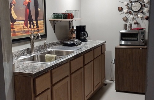 New multi-bedroom home in quiet, peaceful, safe neighborhood. Full kitchen and bathroom, laundry facilities, and lots of extras, makes your stay extra special. Two patios to enjoy the outdoors, local lakes, ponds, hiking trails, and even Buffalo to view. Downtown just a five minute walk, 14 restaurants, 3 boutiques, 3 grocery stores, museums and art galleries. Lots to see.