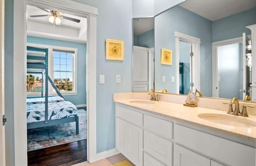 On the third level of the home are two bedrooms, with a connecting bathroom making it easy access from both bedrooms. In each room you have a set of bunk beds; the first set is a twin over two twin beds and the other room has a full over full bunk bed.