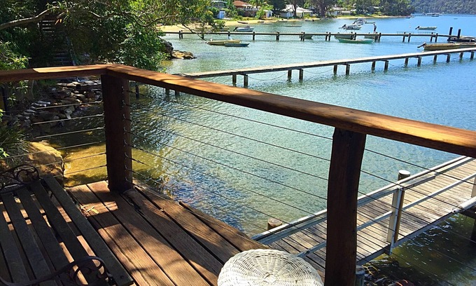 Simplicity and peace in mad times! A residential island an hour from the CBD yet it feels like another world. Watch the sunrise over the escarpment rising above the glorious Hawkesbury River and drift off to sleep to the rhythm of gently lapping waves. Come by ferry, water taxi or tinny to our jetty. Curl up with a book, bushwalk, birdwatch, throw in a line or stroll down to the cafe for coffee. Perfect for writers, artists, boaters, photographers and nature lovers. Recharge and make memories!