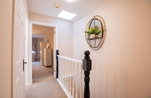 Upstairs, there are two bedrooms and one bathroom. The front bedroom has a 4ft double bed with plenty of storage to unpack and feel right at home. The back bedroom is much larger and has one 4ft6 double and two single beds, a wardrobe, and a dresser.