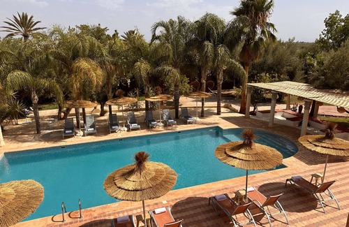 Located just 20 km from Marrakech, you can enjoy the many assets of the villa with its incomparable charm in complete peace of mind. Designed in the image of a traditional Riad, the rooms of KASBAH LINAH all face the beautifully wooded garden and have a shaded terrace. You will relax around the very friendly swimming pool and its outdoor bar, in the shade of the Berber tent which awaits you for a nap, or on the numerous shaded terraces of the estate. Its equipment, resolutely inspired by the 1001 nights atmosphere, will satisfy your desire for festive meals, for up to 70 people.