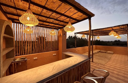 The pure oriental style architecture is combined here with a chic and warm bohemian decoration. From the top of its panoramic terrace, the Villa invites you to admire its magnificent 360° view of the Atlas. Let yourself be enchanted by the atmosphere of LA KASBAH LINAH for an extraordinary journey to the land of a thousand and one nights in a haven of peace.