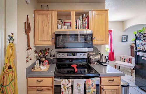 My home is filled with treasures that I have brought back from around the globe, so enjoy the international flair as well as local art by myself and by my friends. You'll also be enveloped by my array of propagated plants which adorn the house and keep it feeling cozy.