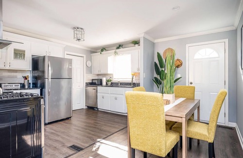 Self-check in via door keypad. Enjoy the entire house, a private front porch, huge deck, full backyard and cooking grill. Guests have access to free wifi, blender, coffee and a keurig is available. Free parking in the driveway. Fully equipped with everything you need!