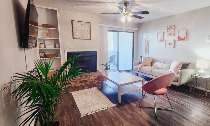 Newly refurbished spacious Boho Chic Ecological Non Tox Apartment in South Lamar with pool and gym. Walking distance to fantastic restaurants and amenities. Including a motorised elevated bed with all new appliances.