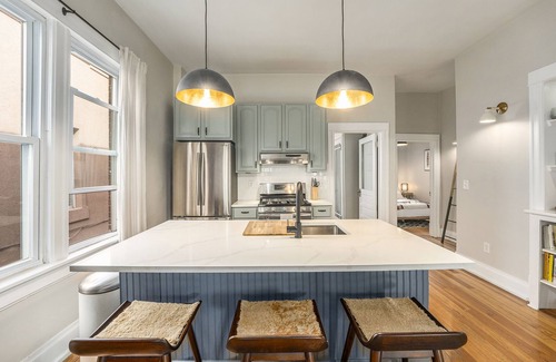 Enjoy a gorgeously decorated three-bedroom bungalow in the heart of the Sloane's Lake neighborhood! The home is tucked into a quiet street that's walking distance to Sloan's Lake, Meow Wolf, Mile High Stadium, and so much more. Kick back and enjoy a private grassy backyard, state-of-the-art kitchen, and an entirely renovated living space that comfortably sleeps six. Our space is the perfect jumping-off point to explore Denver or head up to the mountains for an adventurous day trip!