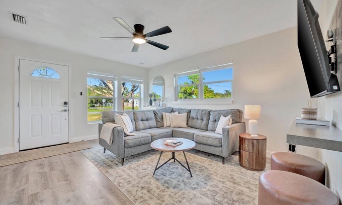 Newly renovated 3-bedroom, 2-bath home in South Tampa, perfect for up to 8 guests! Enjoy the updated kitchen with stainless steel appliances and a cozy dining nook. The home offers a king bed, two queen beds, and a queen sleeper sofa with its own room for plenty of space. Relax in the expansive backyard featuring an outdoor TV, gas grill, gas firepit, games, and an above-ground pool-ideal for soaking up the Florida sunshine. This hidden gem is ready for your next getaway!