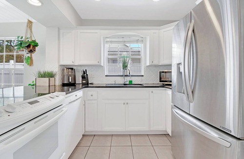 The artistic decor, lush greenery, gorgeous bedrooms, spacious backyard and state-of-the-art bathrooms will have you never want to leave your gorgeous tropical vacation home!